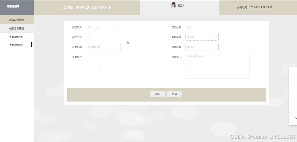 (6)前端交互体验优化:采用现代的前端框架Vue和UI库,提供流畅的用户体验和友好的用户界面,提高员工的使用意愿和效率。