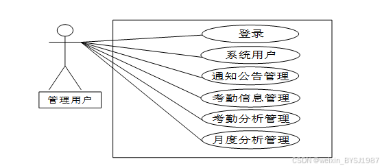通过以上功能需求的实现,基于Spring Boot的优联人力员工考勤系统可以实现对员工考勤信息的记录、管理和分析。管理员具有更高级的权限,可以进行系统用户管理、通知公告管理和考勤数据的分析。管理用户根据角色的不同,可以进行相应的用户管理、通知公告管理和个人考勤信息的查看和修改。员工用户主要关注自己的考勤信息,可以进行打卡记录、请假申请等操作。