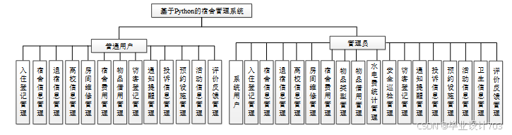 宿舍管理系统的主要功能模块分为学生用户模块和管理员模块这两大部分。