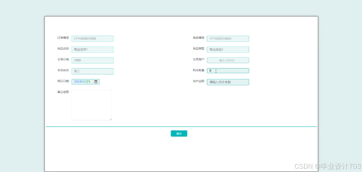 (6)订单信息管理:管理员点击“订单信息管理”菜单可以查看前台用户提交的所有的商品购买订单信息列表,可以进行审核回复。