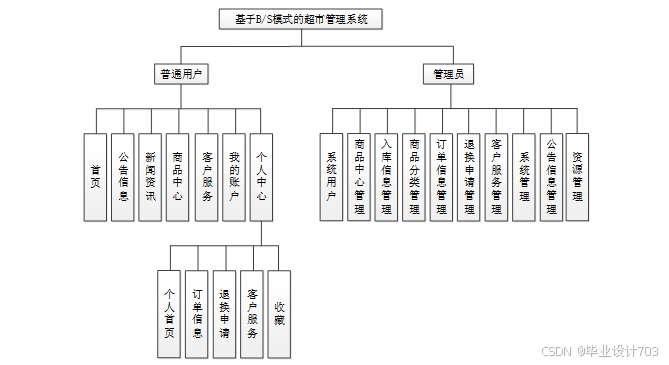 超市管理系统我划分为了用户管理模块和管理员模块两大部分。