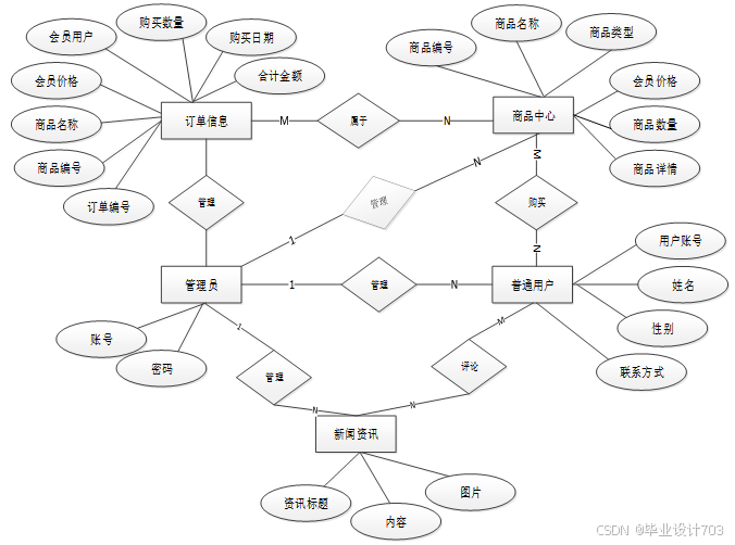 下面是整个超市管理系统平台中主要的数据库表总E-R实体关系图。