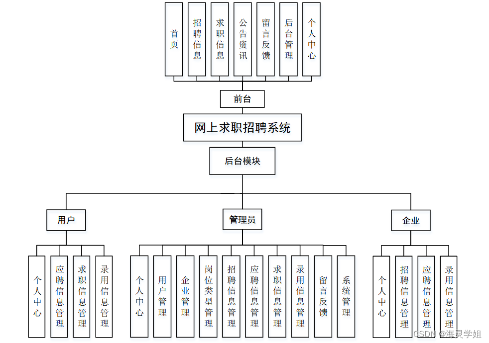 本文探讨了基于Java、SpringBoot和Vue的网上求职招聘系统的开发,包括其选题背景、意义、技术栈(前端Vue、后端Java、SpringBoot框架、MySQL数据库)、功能模块设计(用户管理、企业管理等)以及数据库设计。系统通过改善信息对称和招聘效率,促进就业市场发展。