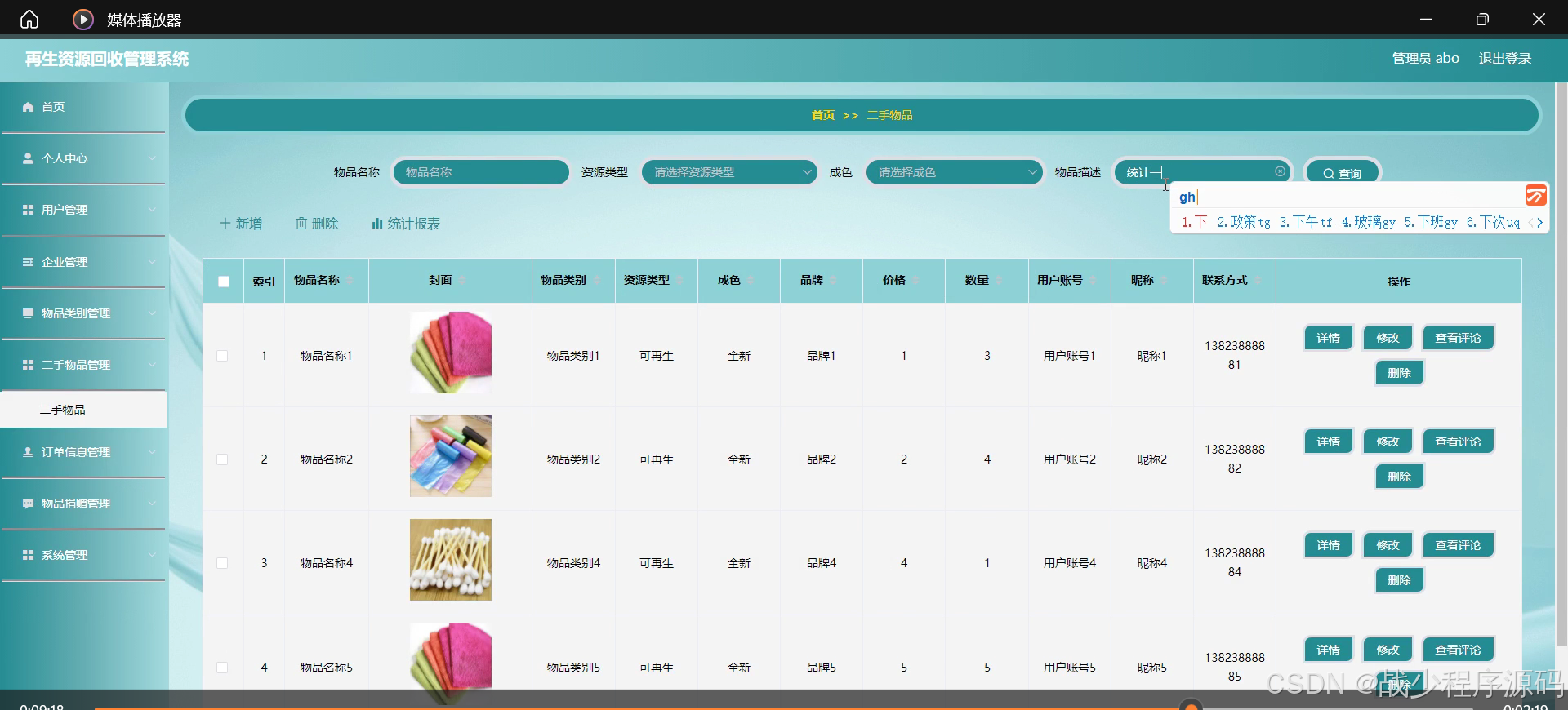 本研究内容将围绕SSM再生资源回收管理系统的核心功能展开,具体包括:用户管理模块,实现用户信息的注册、登录、权限分配等功能;企业管理模块,支持企业信息的录入、查询与审核;物品类别管理模块,定义并管理各类再生资源的分类标准;二手物品管理模块,实现二手物品的上传、浏览、购买等功能;订单信息管理模块,记录并跟踪订单状态,提供订单查询与物流跟踪服务;物品捐赠管理模块,支持用户捐赠再生资源,实现捐赠信息的记录与统计。通过这些功能模块的设计与实现,构建一个高效、便捷、智能化的再生资源回收管理系统。