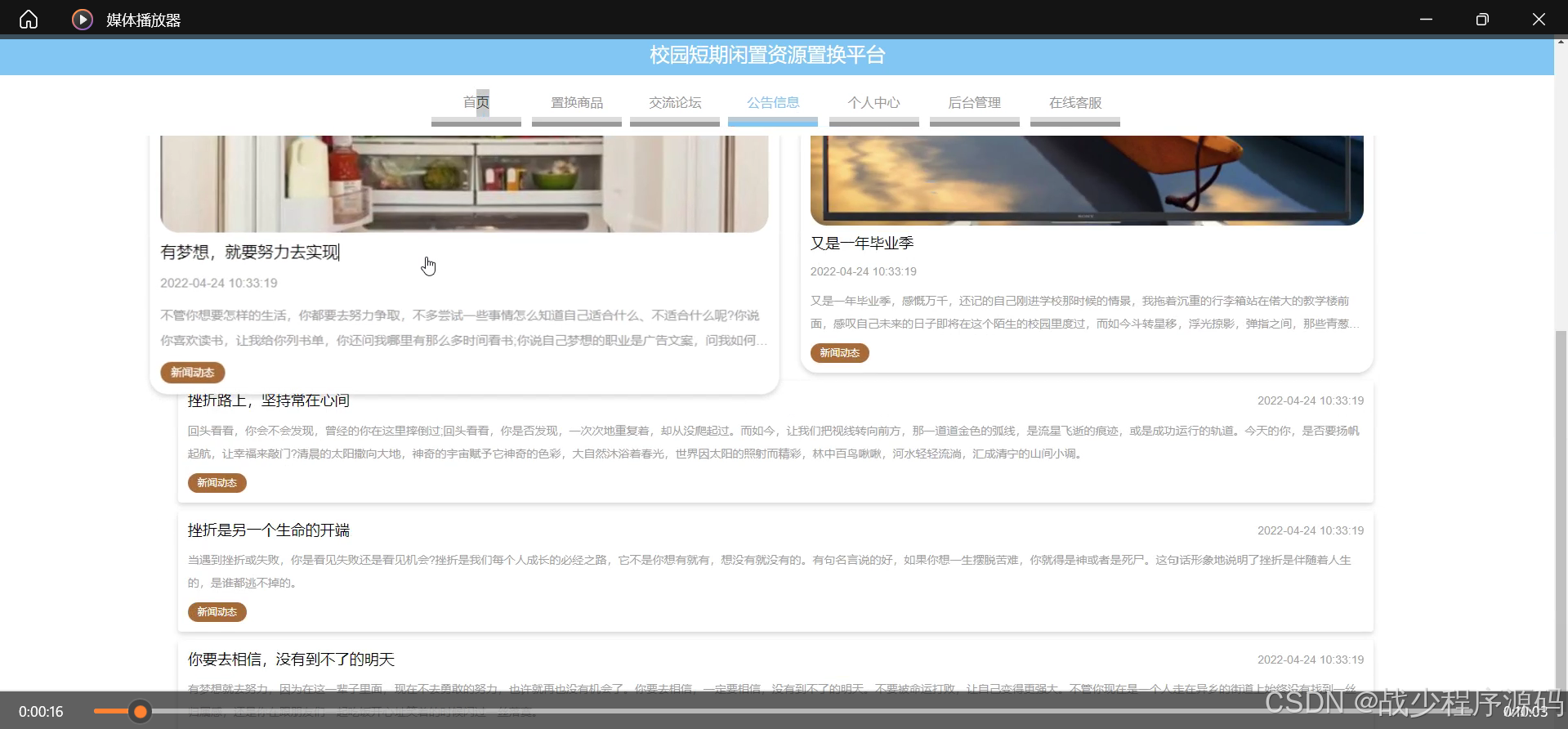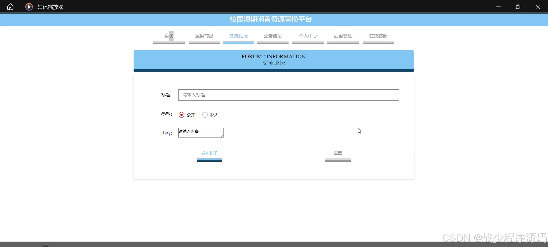 - 提出基于SSM的校园资源置换技术实现规范,形成包含动态匹配算法库、信用评估模型的开源组件;