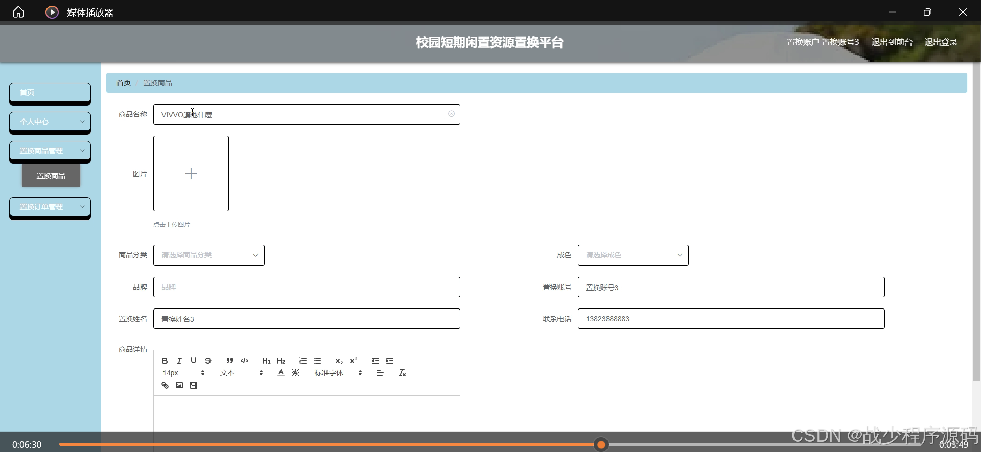 - 商品服务:设计多维度标签体系(如"紧急置换""跨校区配送"),支持图片OCR自动填充商品信息;