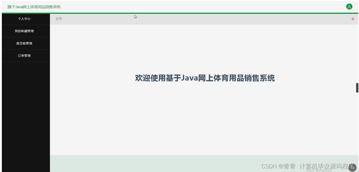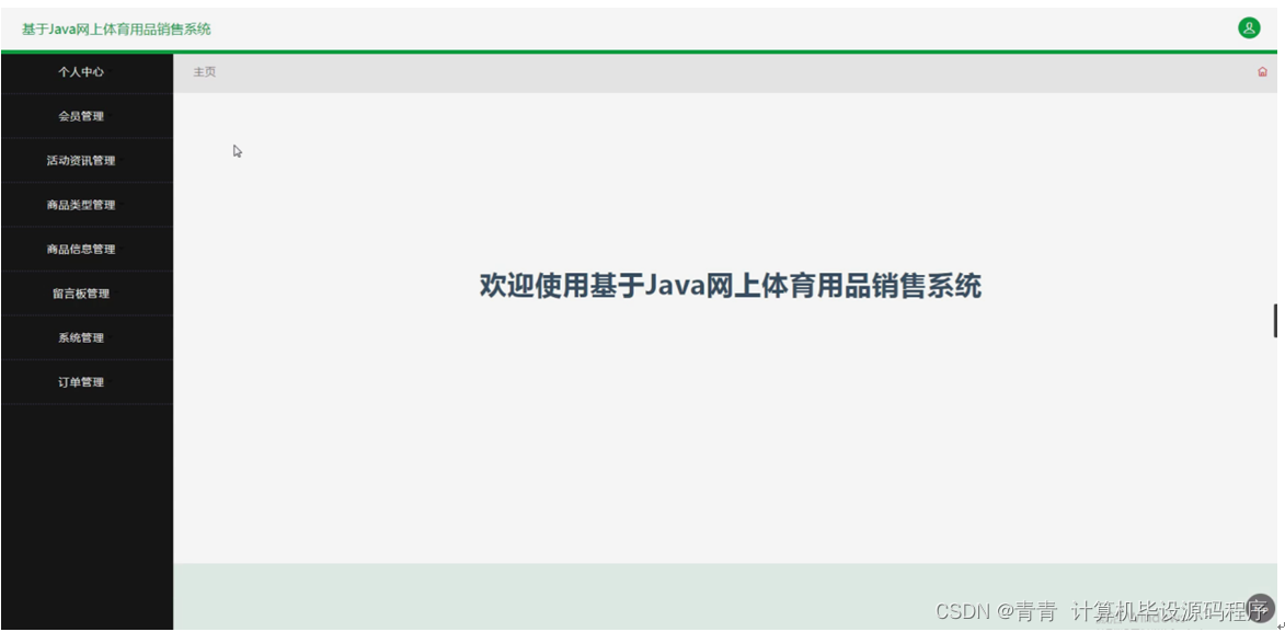 管理员进入主页面,主要包括对主页、个人中心、会员管理、活动资讯管理、商品类型管理、商品信息管理、留言板管理、系统管理、订单管理等功能进行操作。管理员主页面如图5-7所示: