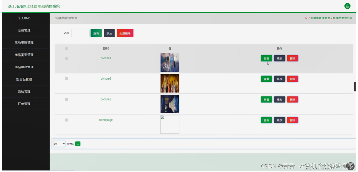 管理员点击系统管理,进入系统管理页面可以对轮播图管理进行详情、修改或删除操作。如图5-13所示: