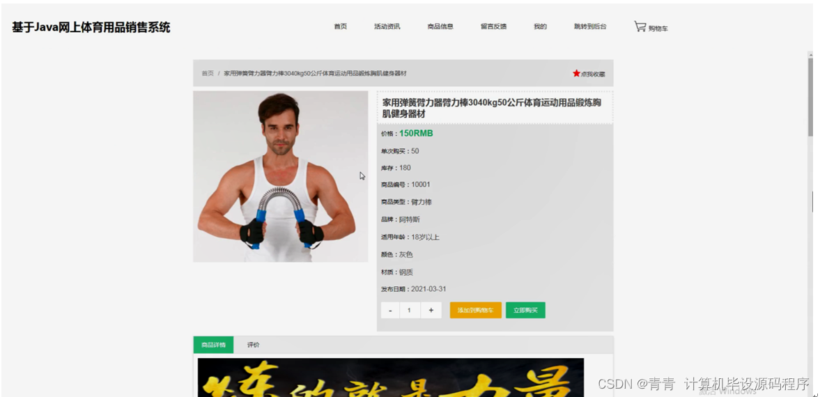 商品信息:在商品信息页面的输入栏中输入商品名称、品牌和选择商品类型进行搜索,可以查看到商品详细信息,并进行添加到购物车、立即购买、评论或收藏操作;商品信息页面如图5-3所示: