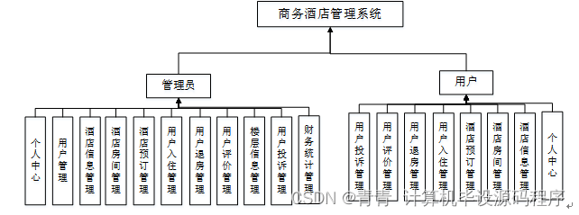 这些功能可以充分满足商务酒店管理系统的需求。此系统功能较为全面如下图系统功能结构如图4-3所示。