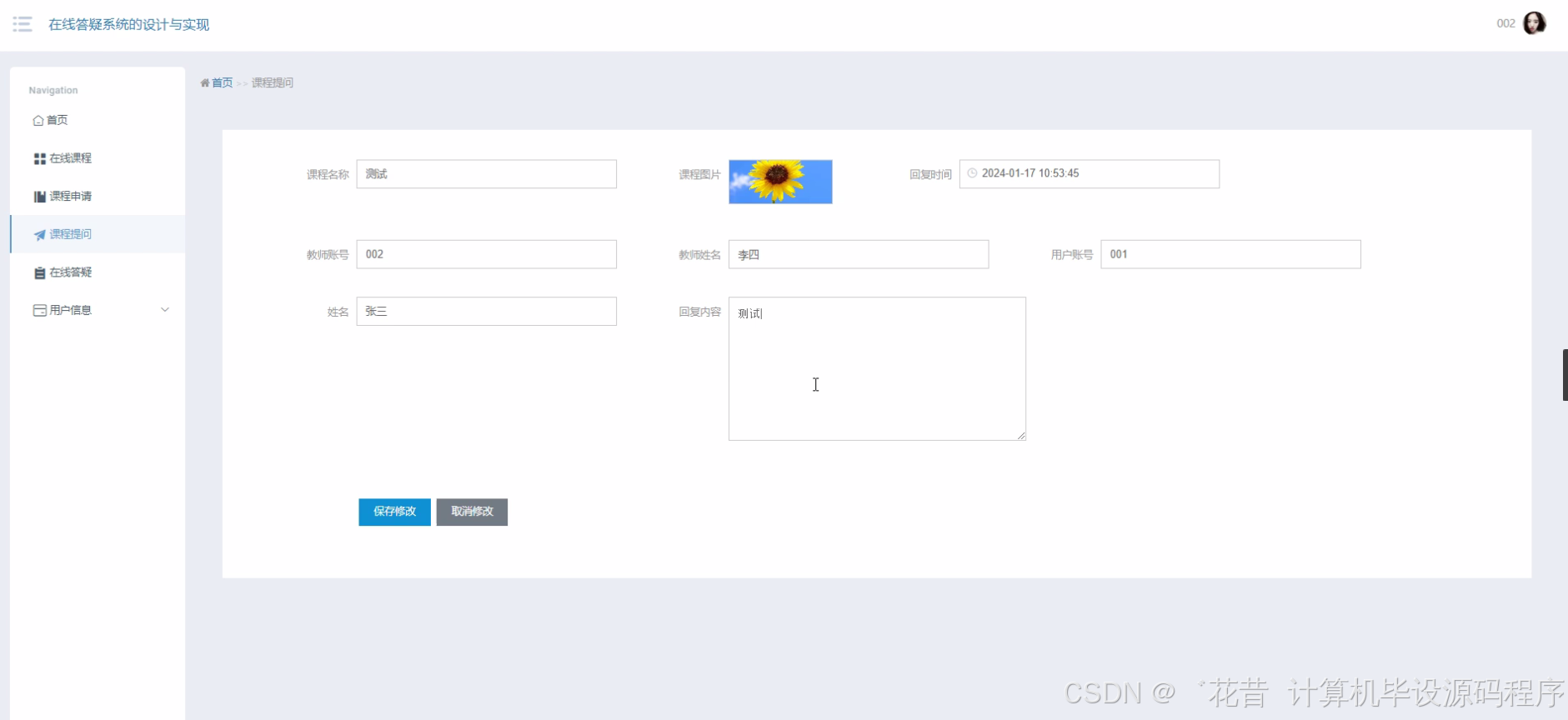 - 系统交互设计:研究学生、教师与系统之间的交互流程,确保操作的便捷性和直观性。例如,学生如何方便地找到想要提问的课程,教师如何清晰地看到待回答的问题列表等。