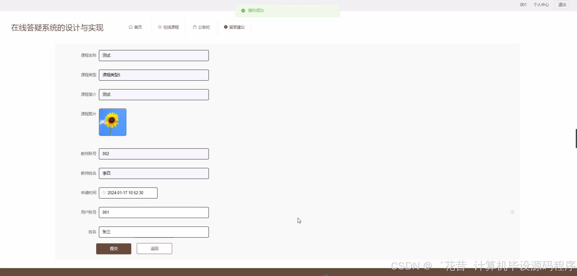 - 用户角色管理:针对学生和教师这两种主要用户角色,设计不同的权限和功能。例如,教师可以管理课程类型、审核课程申请等,学生可以进行课程申请、提出课程问题等。
