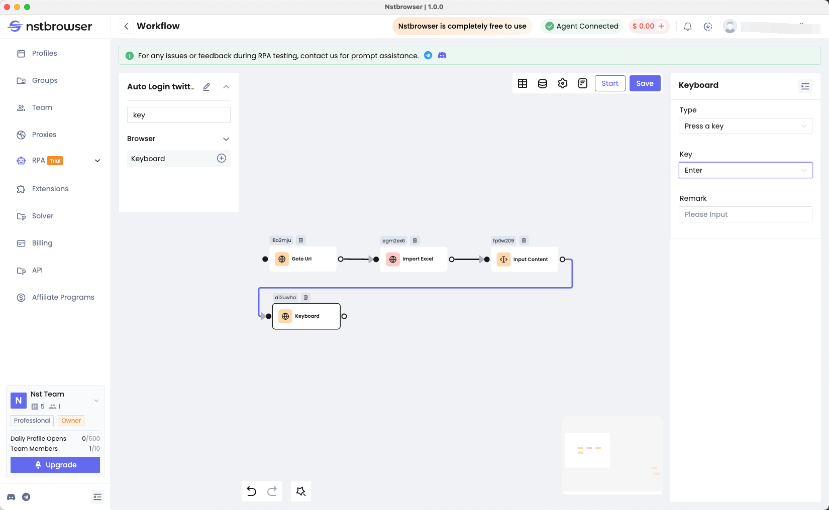 在这里我们需要使用Nstbrowser RPA,一个完全免费的多账户管理工具。