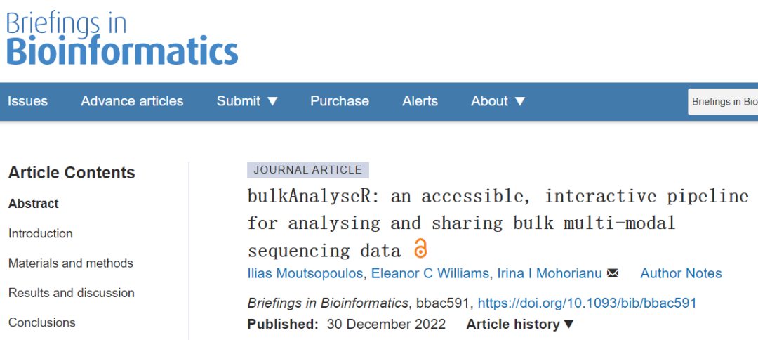 数据分析工具推荐 | bulkAnalyseR:用于分析和共享批量多组学数据的交互式工具包 《Briefings in Bioinformatics》发表了一个集成了最先进方法的工具包:bulkAnalyseR,可以处理不同的模式数据(转录、表观、时空等),促进顺式,反式和定制调控网络的强大集成和比较。