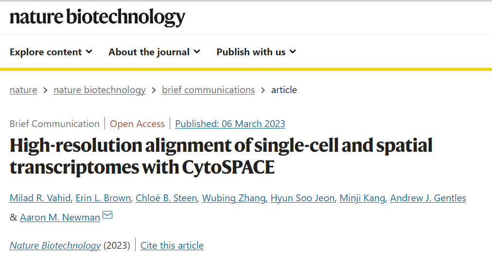 NBT | 使用CytoSPACE对单细胞和空间转录组进行高分辨率比对 近日,《Nature Biotechnology》发表了一种将单个细胞从scRNA-seq图谱映射到空间表达谱的优化方法:CytoSPACE。