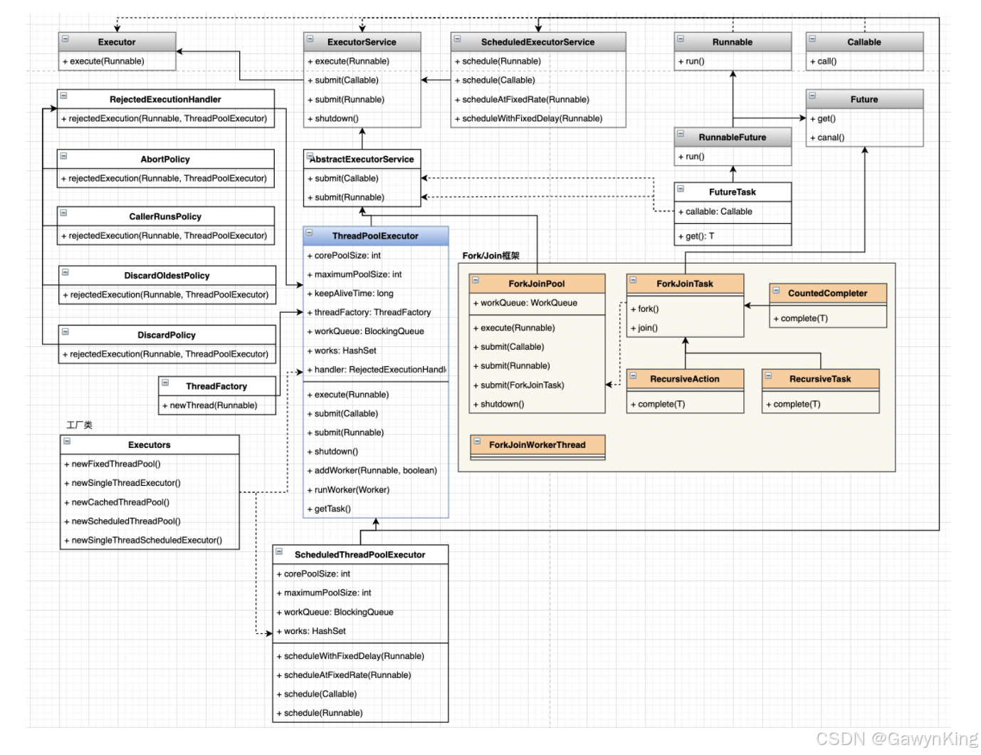 从架构上来看,Executor 框架提供了一系列接口和实现类,其中最核心的组件包括:
