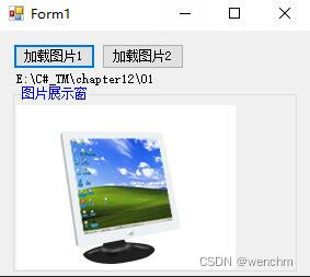 groupBox1.Text = "图片展示窗"; //把图片放到容器里的意义是增加标题显示