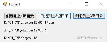 可执行文件存储在Debug目录下,举例:E:\C#_TM\chapter12\01\bin\Debug,那么项目文件所在目录就是:E:\C#_TM\chapter12\01。