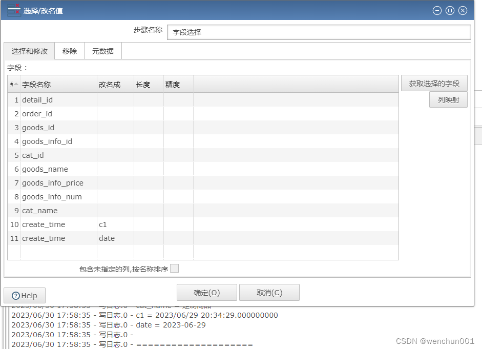 选择字段步骤时,新增列