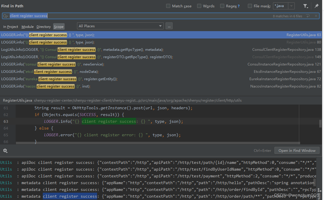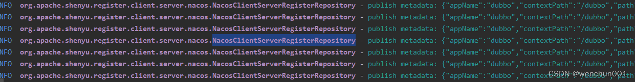 一个和注册服务信息有关的日志,如下图,是NacosClientServerRegisterRepository打印出来的