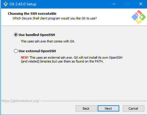 “Choose a credential helper” 选项是关于 Git 在 Windows 上如何处理凭证(credentials)的设置。在 Git 中,凭证通常是用于身份验证的用户名和密码,用于与远程仓库进行交互。这个选项允许你选择在 Windows 系统上存储和管理 Git 凭证的方式。