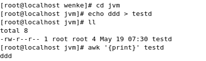 1.例如:使用awk执行了一个打印的动作,将testd文件中的内容打印出来。