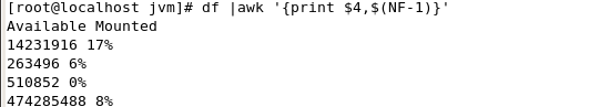 2.查看磁盘使用情况第5列的数据(不指定分隔符时,默认为空格,这里默认将多个连续的空格当做一个分隔符)