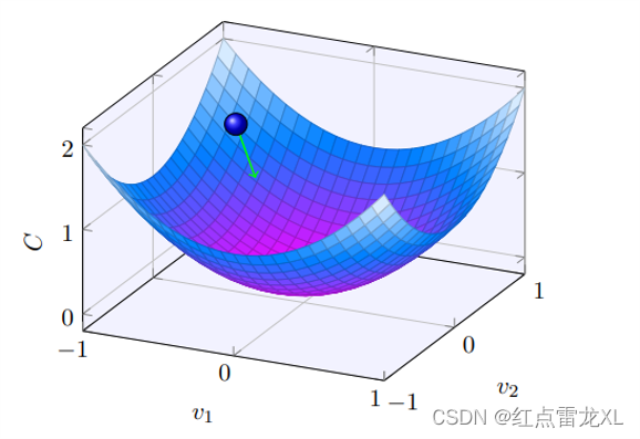 最终目的就是找到一个w和b的选择,让二次代价函数C在选择这些方向时能不断地下降,也就达成了上图中小球下落的过程,也是网络正向学习的过程。