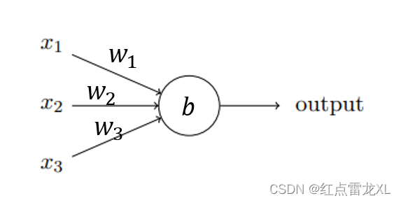上图所示的感知机有三个输入x123,一个输出output,三个权重w123和一个偏置b,那么这个感知机的作用是什么呢,请看下面。