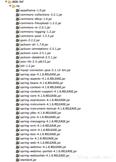 这些jar包是根据需求进行测试后的结果,我使用的是spring自带的连接池,因此未进行合并,根据以后需要再进行合并ibatis或者hibernate