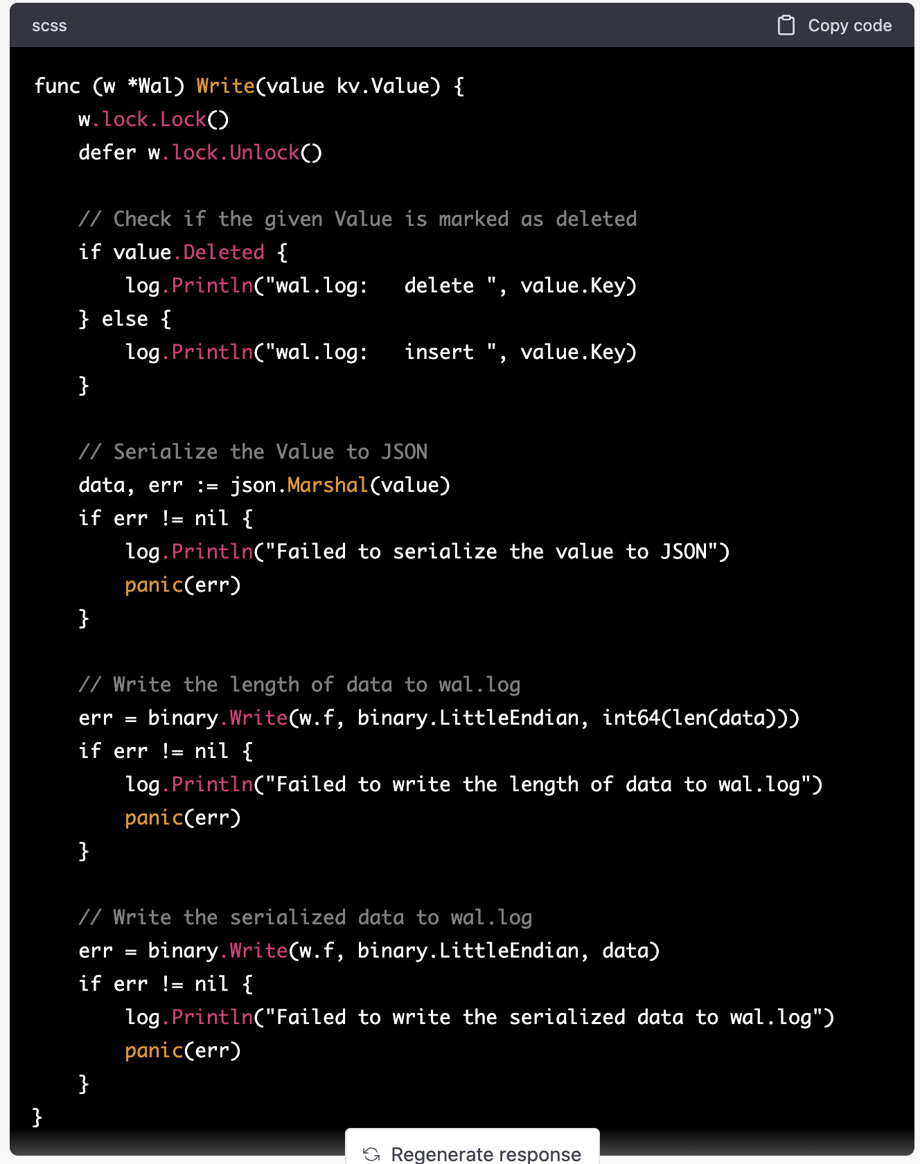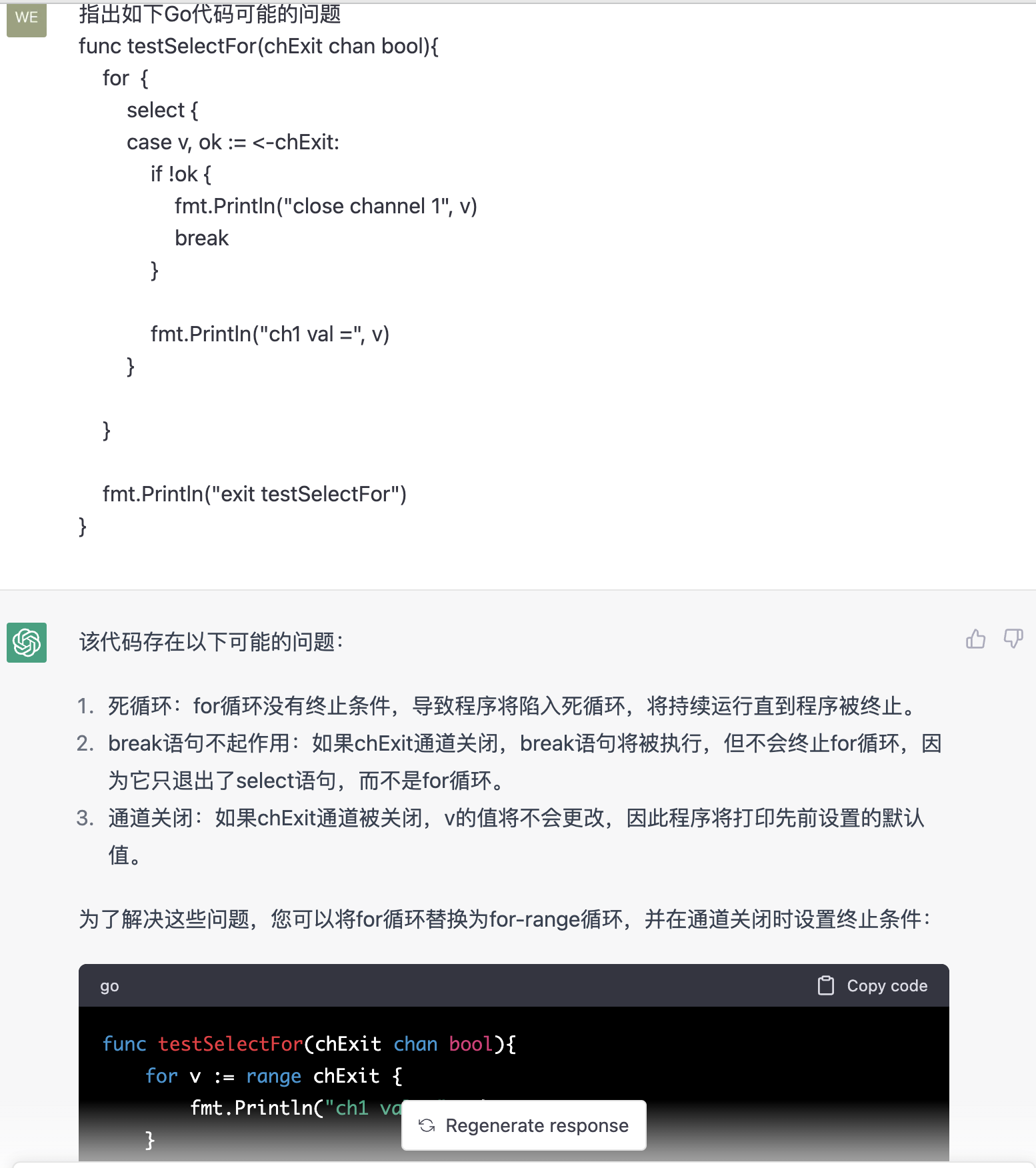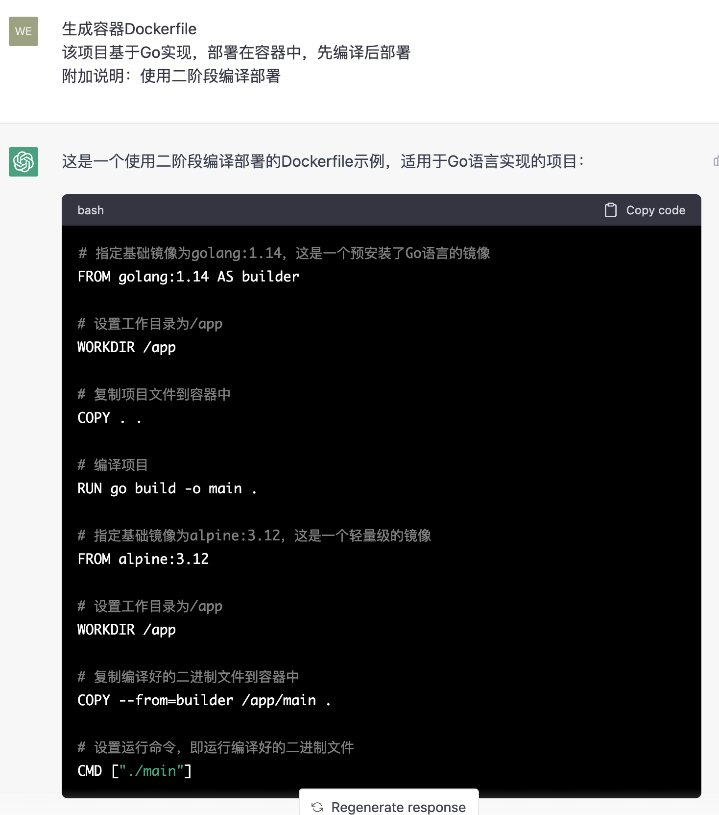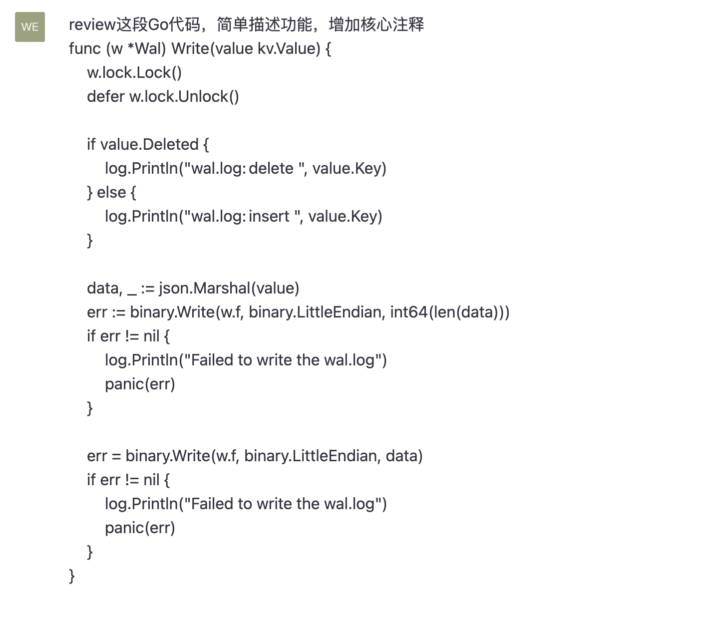 我们先设置接下来回答都基于Go语言实现,可以看到会自动给出对应的结构体设计