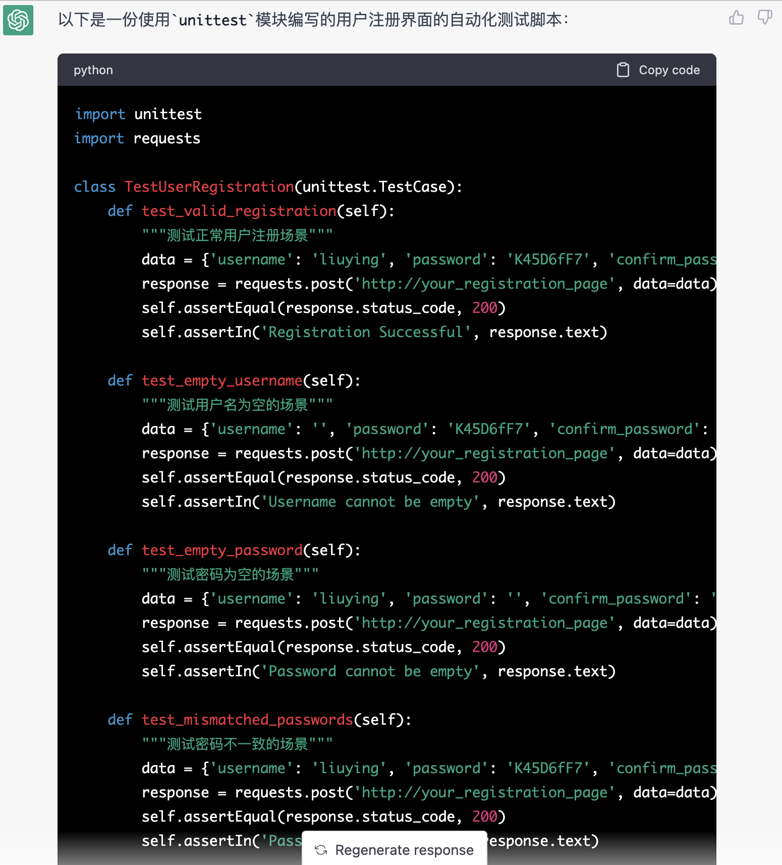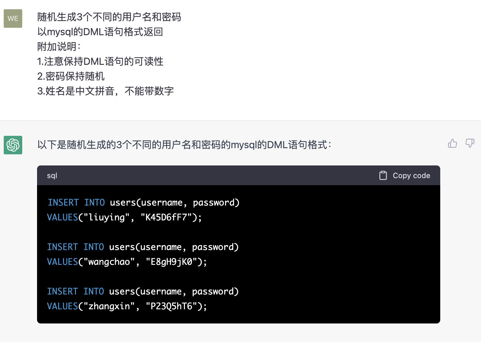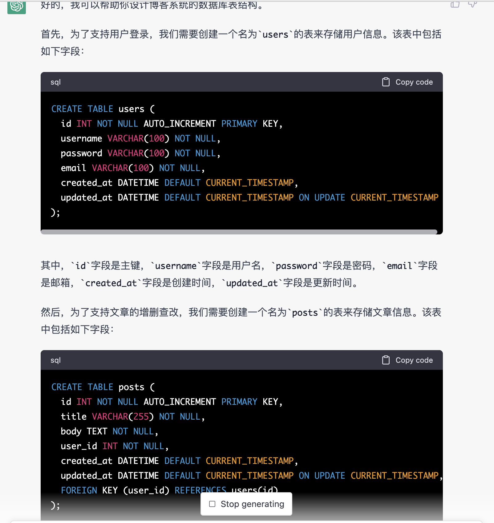 - 对于CURD类的编码需求,ChatGPT已经很完善,这可能得益于微软Github大量的代码的投喂
