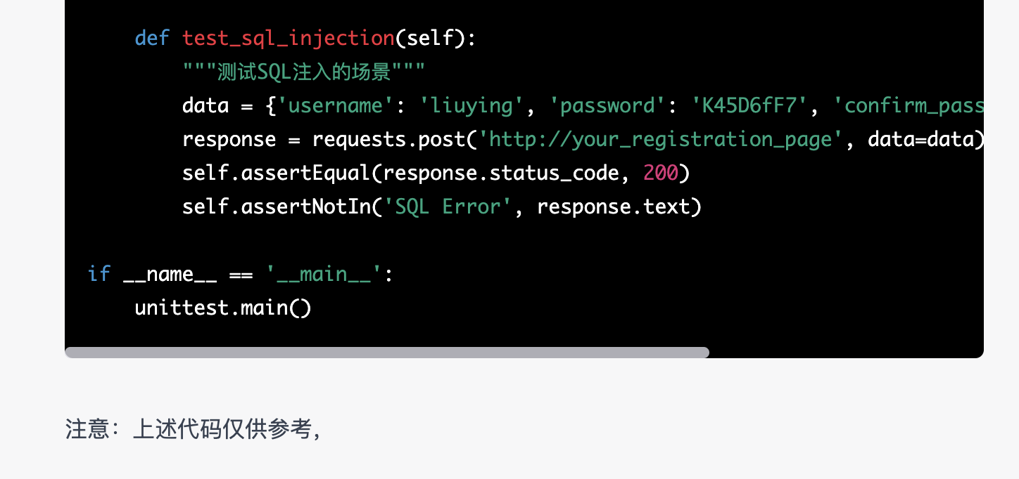 针对如上博客系统注册接口测试,SQL注入场景覆盖度有限
