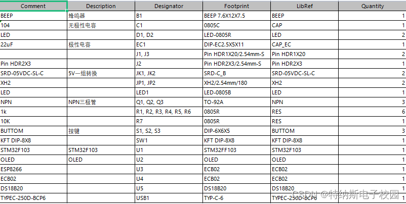 硬件清单: