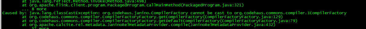 看异常怀疑包冲突,排了janino包,提交还是出现这个异常。找到项目中引用的CompilerFactoryFactory这个类查看异常处发现代码对不上,少了很多行代码,于是将flink lib下对应的jar取下来反编译发现代码对上了,将本地项目中对应的flink-table-planner,flink-table-planner-blink包不打包进去,使用flink lib下自带的jar,重新提交任务正常运行了。为什么自己打包的flink-sql-connector-kafka包无法加载到,心中还是疑惑。为了解决这个使用阿里开源的arthas查看类加载方式。在flink web ui上查看刚提