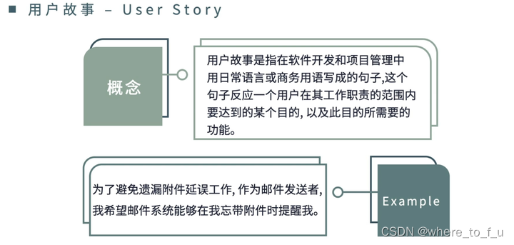 用户故事是指在软件开发和项目管理中,用日常语言或商务用语写成的句子,这个句子反应了一个用户在其工作职责范围内要达到的某个目的,以及此目的所需要的功能。
