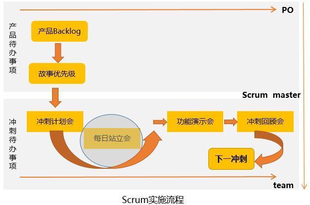 在Scrum中,使用产品Backlog来管理产品的需求。产品backlog按照实现的优先级进行排序,以商业价值作为排序的主要原则。在Sprint中,Scrum团队从产品Backlog中挑选最高优先级的需求进行开发。挑选的需求在Sprint计划会议上经过讨论、分析和估算得到相应的任务列表,称它为Sprint backlog。当Scrum团队完成Sprint backlog列表中的所有任务时,本次Sprint结束,进入下一个Sprint迭代周期。