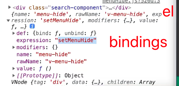 // 绑定时干吗 el绑定的元素 bindings上有方法setMenuHide vnode中可以拿到组件的实例