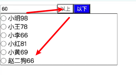 // 根据输入框的值this.searchedScore + 以上/以下this.filterRegular 过滤数据