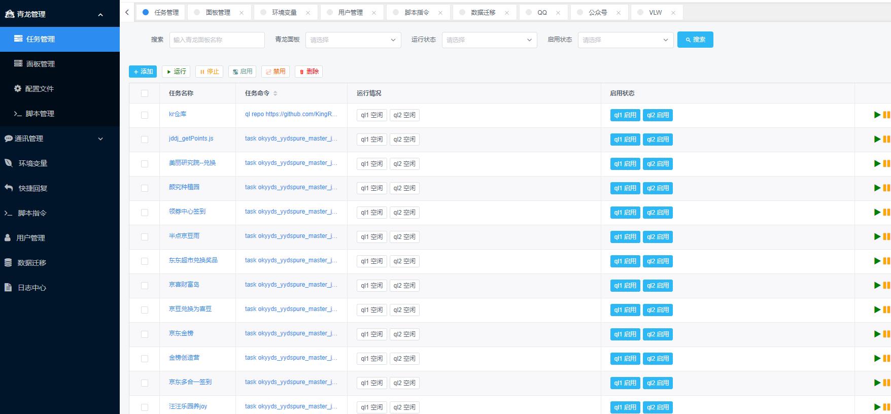 青龙面板-方舟ark搭建成品参考http://jd.51kuaigouwu.com/拉库失败的 青龙配置文件config.shGithubProxyUrl=“xxxx” xxxx是代理 (设置代理即可或去掉默认代理地址)一般都在前三十行 找到后更改小埋duck仓库(临时活动,开卡,有活动豆多)ql repo https://github.com/okyyds/duck.git "jd_|jx_|gua_|jddj_" "activity|backUp" "^jd[^_]|USER|funct