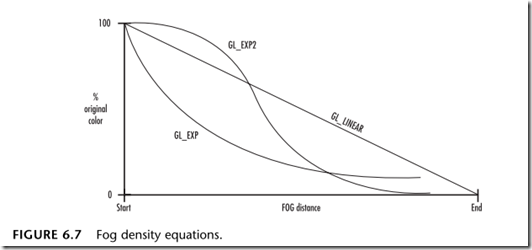 glFogi (GL_FOG_MODE, GL_LINEAR); // 使用哪一种雾化方程