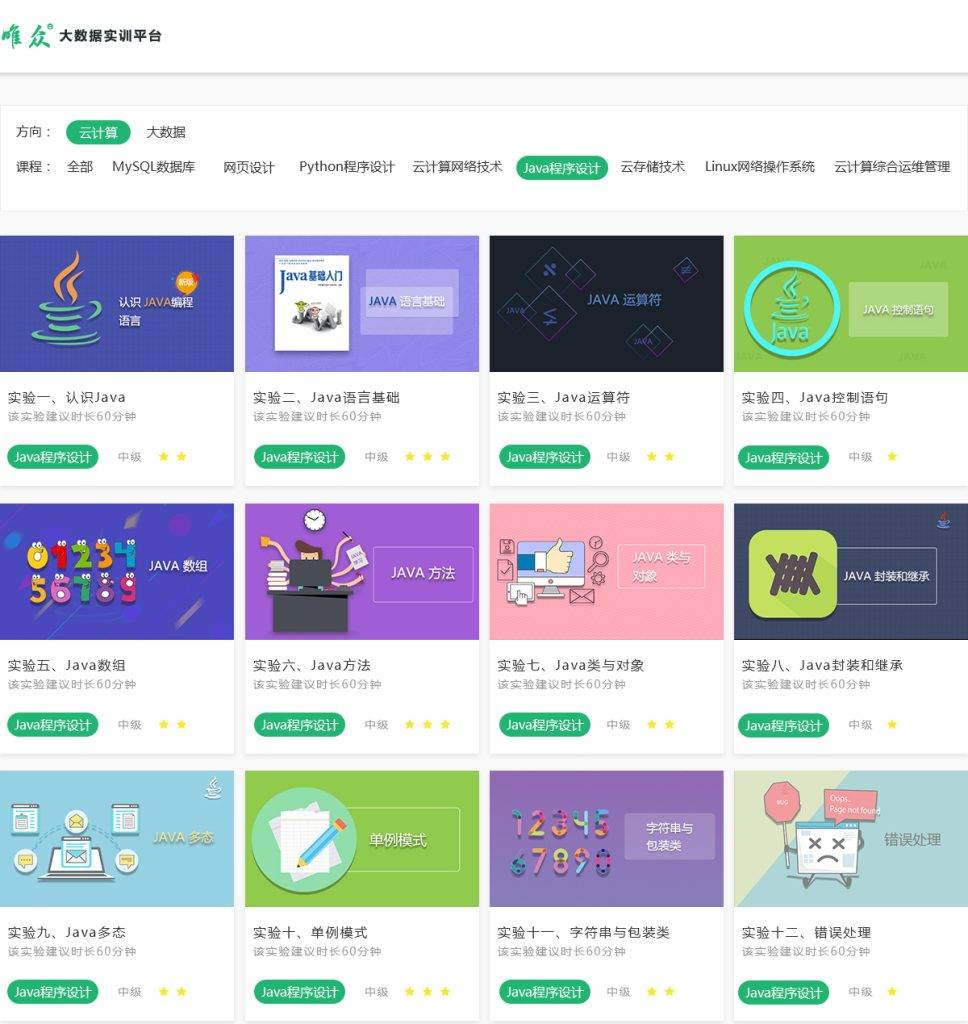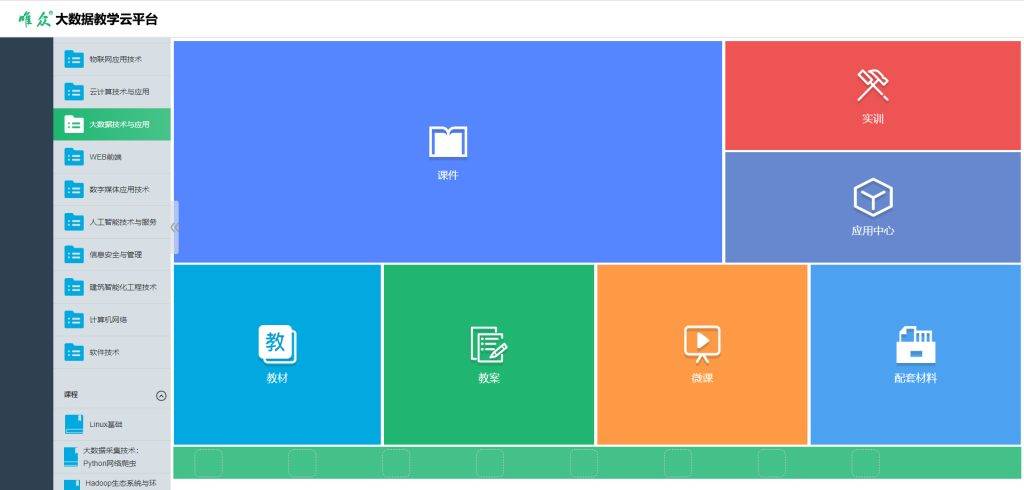 大数据教学云平台是一个开放式的课程平台,除了唯众的课程体系之外,老师可自主开发在线课程,支持Word、PPT、PDF、视频等常见课件直接转换成在线课程,从而让老师很方便的将专业基础课程迁移到平台上,便于构建完整的大数据、云计算、人工智能专业课程体系。平台内置丰富的教学实训资源,将教学与实训集合起来,依托平台打造前沿的综合一站式实践基地。
