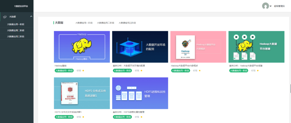 大数据项目实训平台集成虚拟化模版功能,内置Hadoop、Spark、TensorFlow、Caffe等主流的大数据、云计算和人工智能学习开发环境,可通过模版快速批量地为学生准备好实训环境。支持多门大数据课程同时开展实训,平台可按课程自动准备各个课程所需虚拟机,学生登录系统后可直接开展实训。
