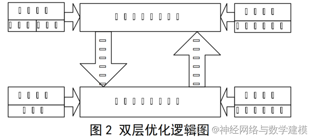 本文采用双层优化规划方法对微电网系统进行优化,上层为容量优化模块,用于寻找系统最优配置,包括系统各设备类型、台数和容量,下层为调度优化模块,用于计算系统最优运行方案。双层优化含有两个层次,上层决策结果一般会影响下层目标和约束条件,而下层则将决策结果反馈给上层,从而实现上下层决策的相互作用,如图2 所示为本文双层优化逻辑图。