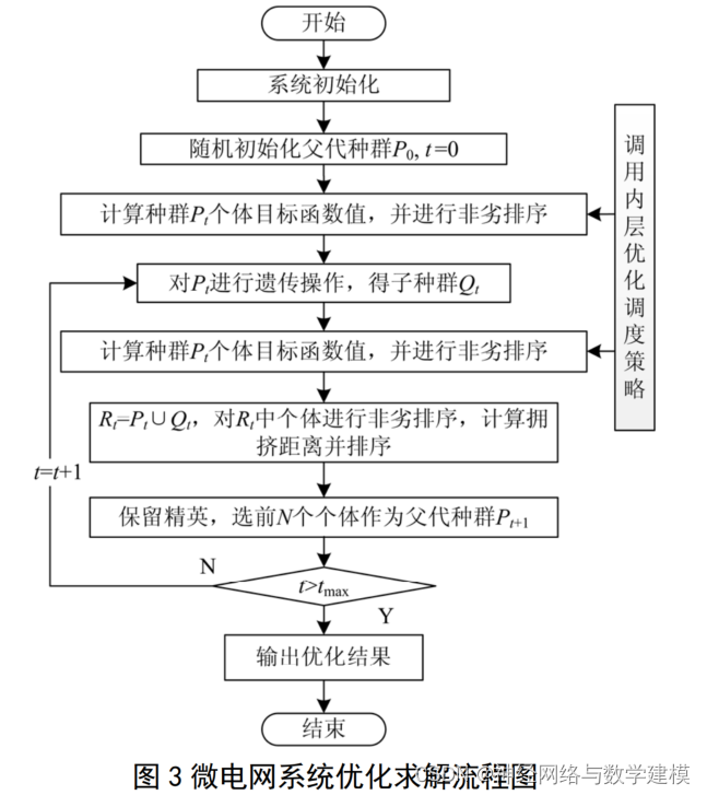 多目标优化通常作为一种在不同目标中寻找最优解的有效方法。由于这些目标可能是非线性的、矛盾的或不可测量的,多目标的全局最优解通常通过 Pareto 最优解集获得。Pareto 是不同目标解的折中方案,决策者可以依据 Pareto 前沿和对不同目标的需求做出决策。当使用多目标遗传算法时,所得到的解并没有好坏之分。因此,它避免了将多目标问题转化为单目标问题权重问题的引入。本文基于NSGA-II 的多目标遗传算法被用来求解多目标问题。