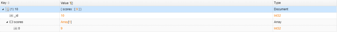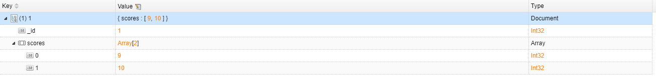 db.students.insertOne({_id: 1, scores:[8,9,10]})