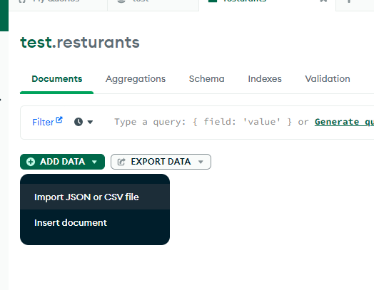mongoimport <path to restaurants.json> -c=restaurants