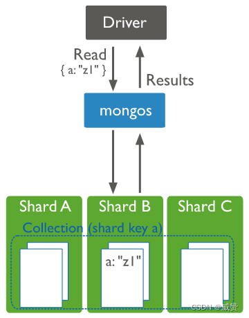 当用户指定具体的数据分片时,mongodb分片集无需再次确认到哪个节点中读取数据,这样读取操作会变得很高效。针对分片集群的查询应该带上分片键。带有分片键的查询,mongos可以用过分片元数据将查询分配到具体的分片节点当中。