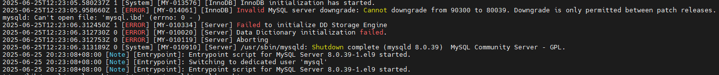 在非正常操作流程下,比如拉取了mysql镜像的latest版本(9.3.0),则在启动ragflow时会出现mysql启动异常的问题