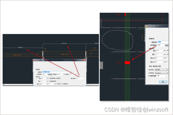 模式二:用户选两个点,按前期批量自动生成支架的规则,计算出两点间的支架,生成符合规范的支架,支架所处位置的管径由“附近”的管径文字来获取。